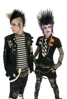 Вообще, одежда должна была отражать идеи панка, то есть протест, бунтарство, нигилизм. Для панка по большому счету неважно, что было носить. Это со временем предприимчивые дизайнеры начали специализированно выпускать рваные джинсы и футболки. Главное в стиле панк, это то, что он не соответствует общепринятым нормам. Это что касается одежды. Помимо нее, отличительной чертой панка стала прическа, которая повергала в шок простых обывателей. Это были высоко поставленные волосы, либо выбритые непонятным образом, выкрашенные в яркие цвета. Атрибутика панка тоже имела свою особенность. Так как сам стиль носит довольно агрессивные характер, то в моду стали входить шипованные напульсники, ошейники, тяжелые цепи, которыми нередко наносили удары, и устраивали дебоши. Пирсинг так же стал отличительной чертой. Прокалывали лицо, уши, и нередко вместо колец вставляли булавки. Ношение булавок на одежде, появилось благодаря уже упомянутой группе Sex Pistols. После того, как на обложке их альбома изобразили портрет королевы Англии с заколотым булавкой ртом, молодежь активно начала пропагандировать эту идею.